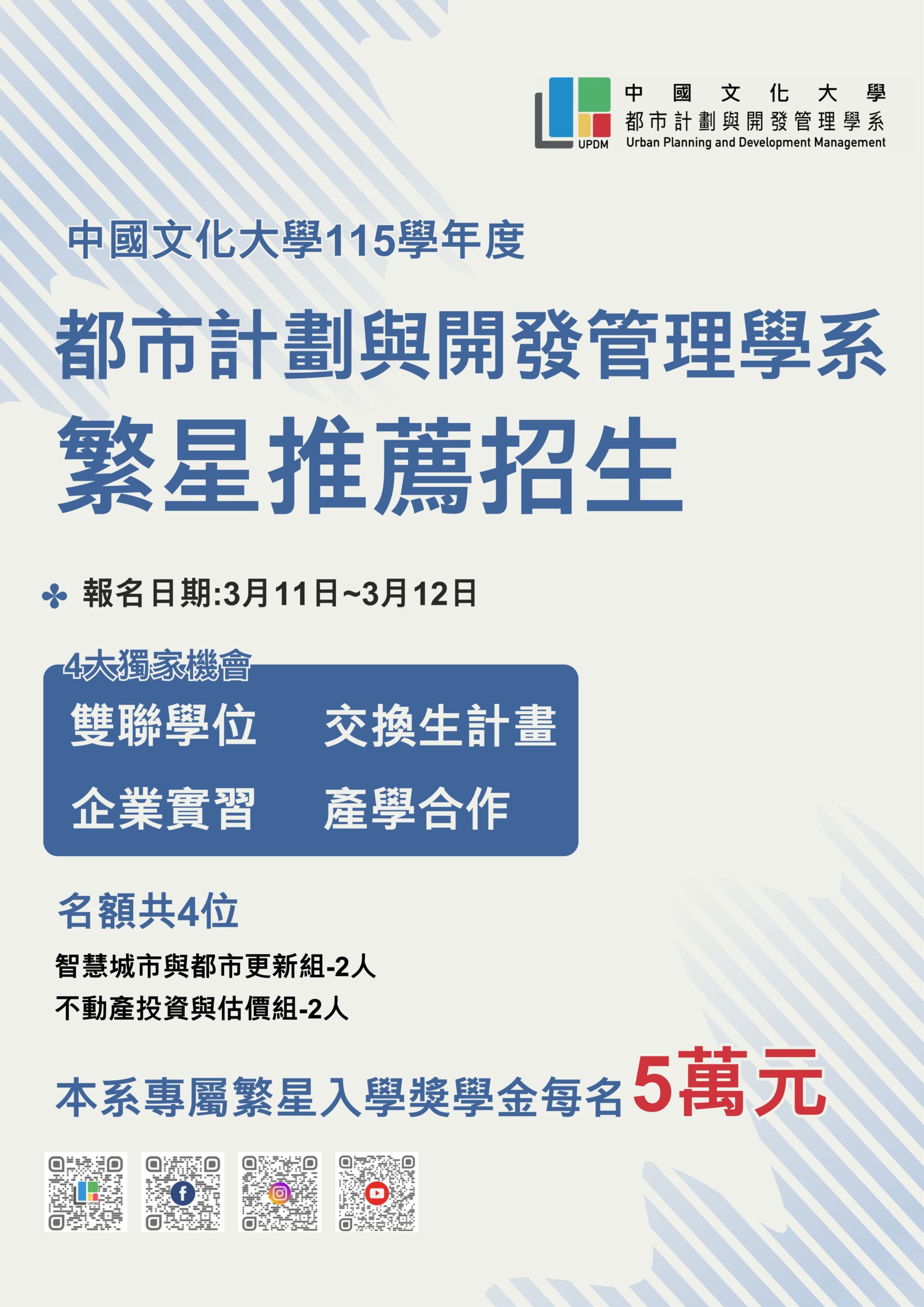 🏛️ 115學年度文化大學都市計劃與開發管理學系繁星推薦招生中! 🚀