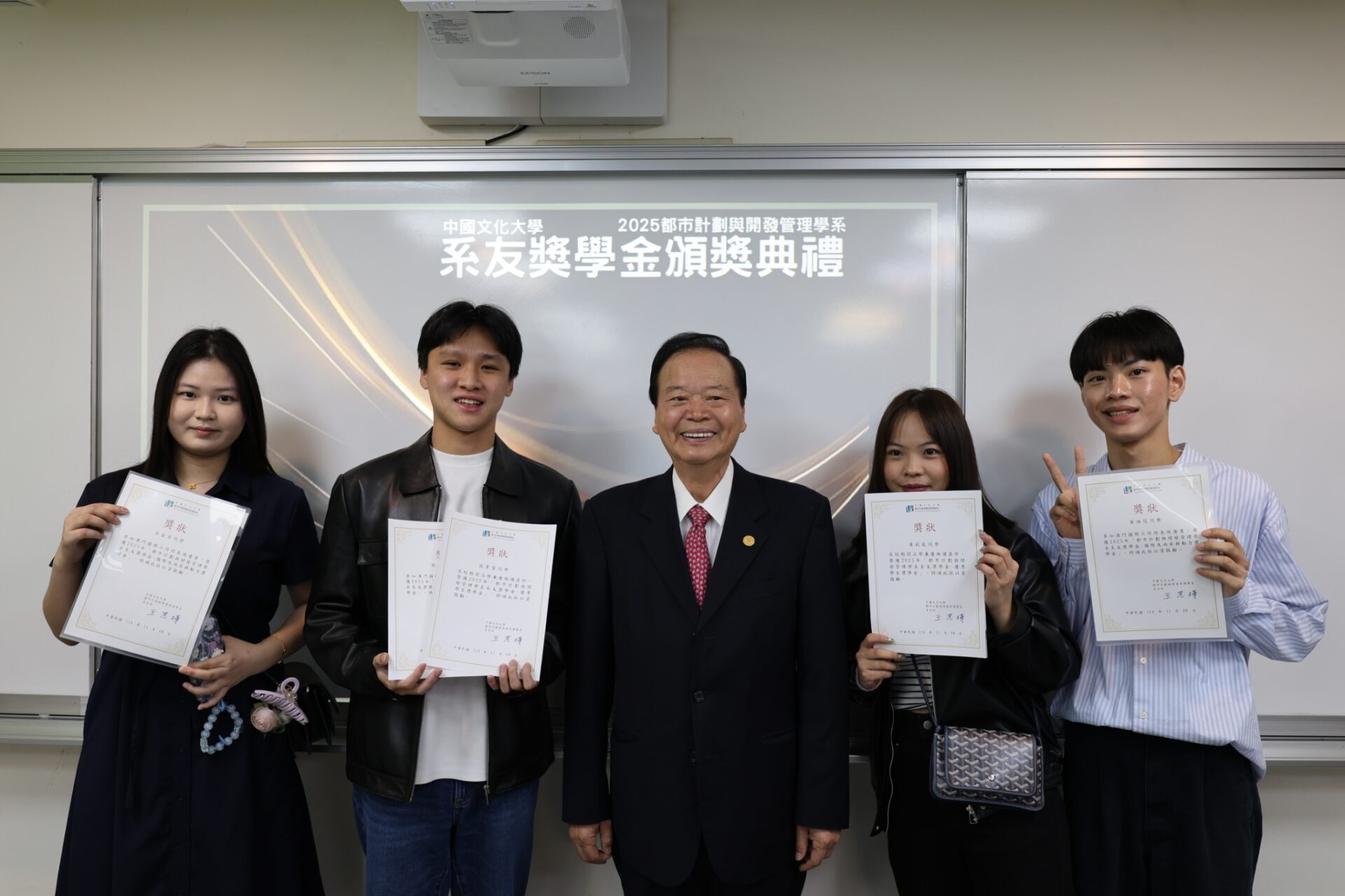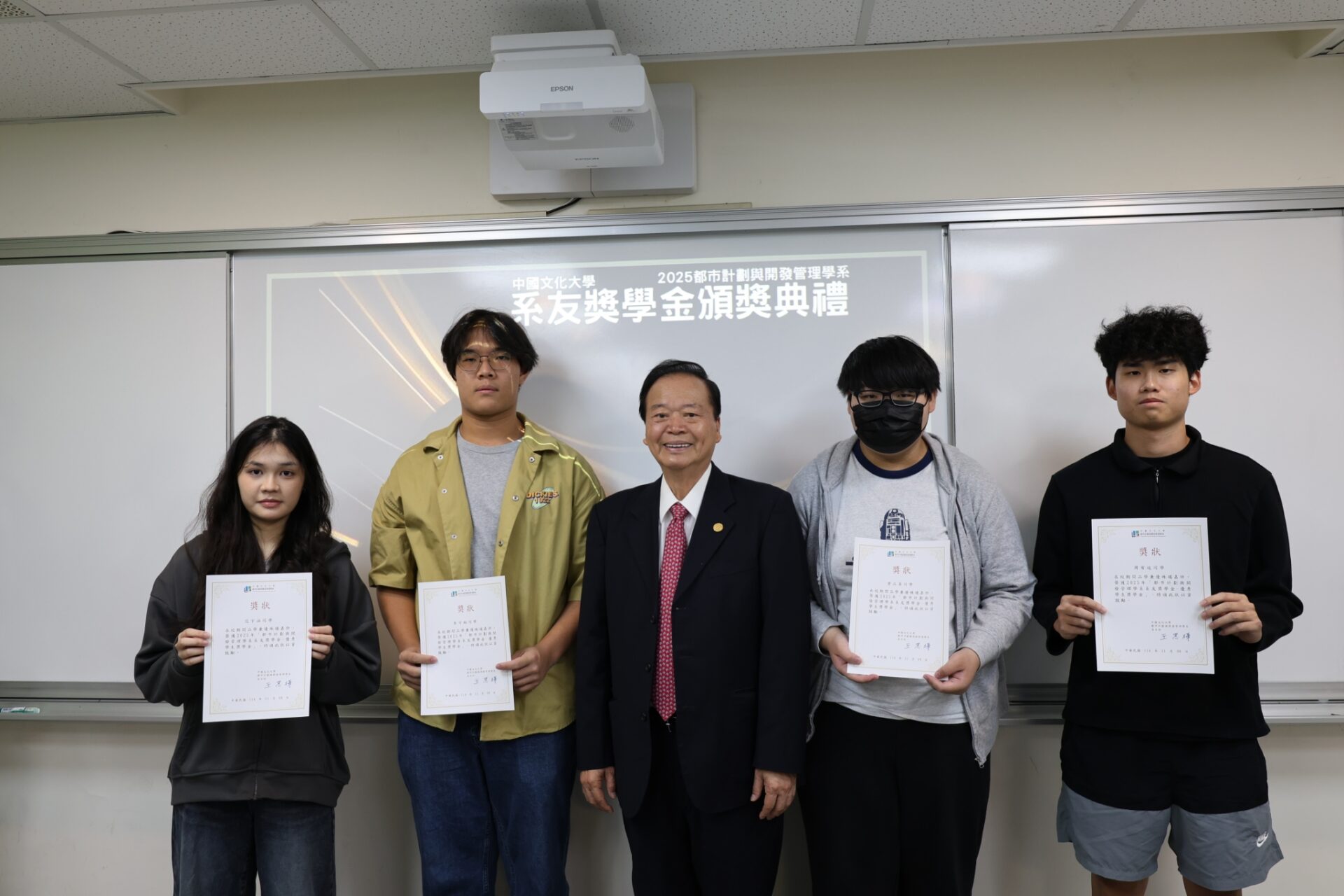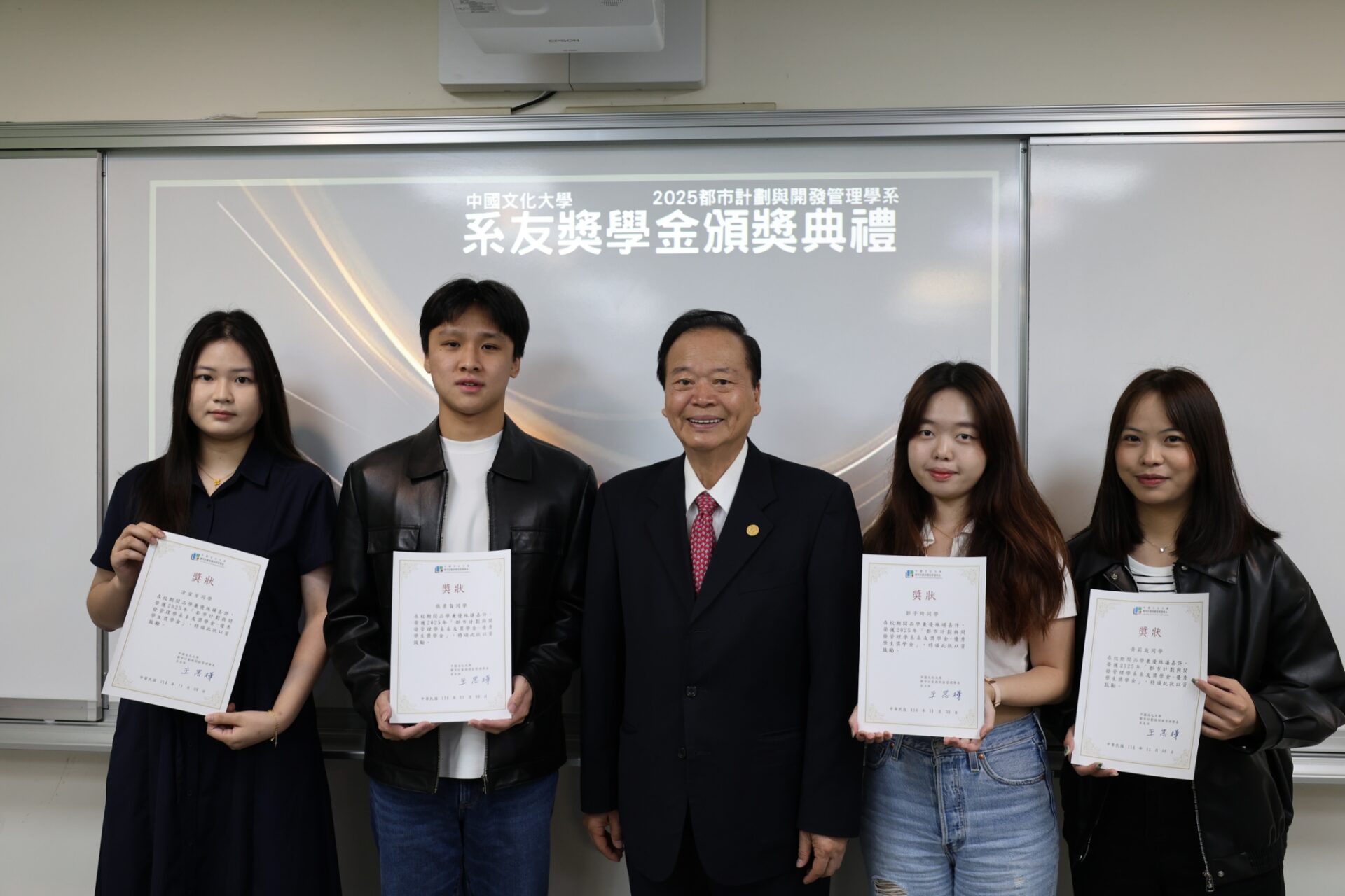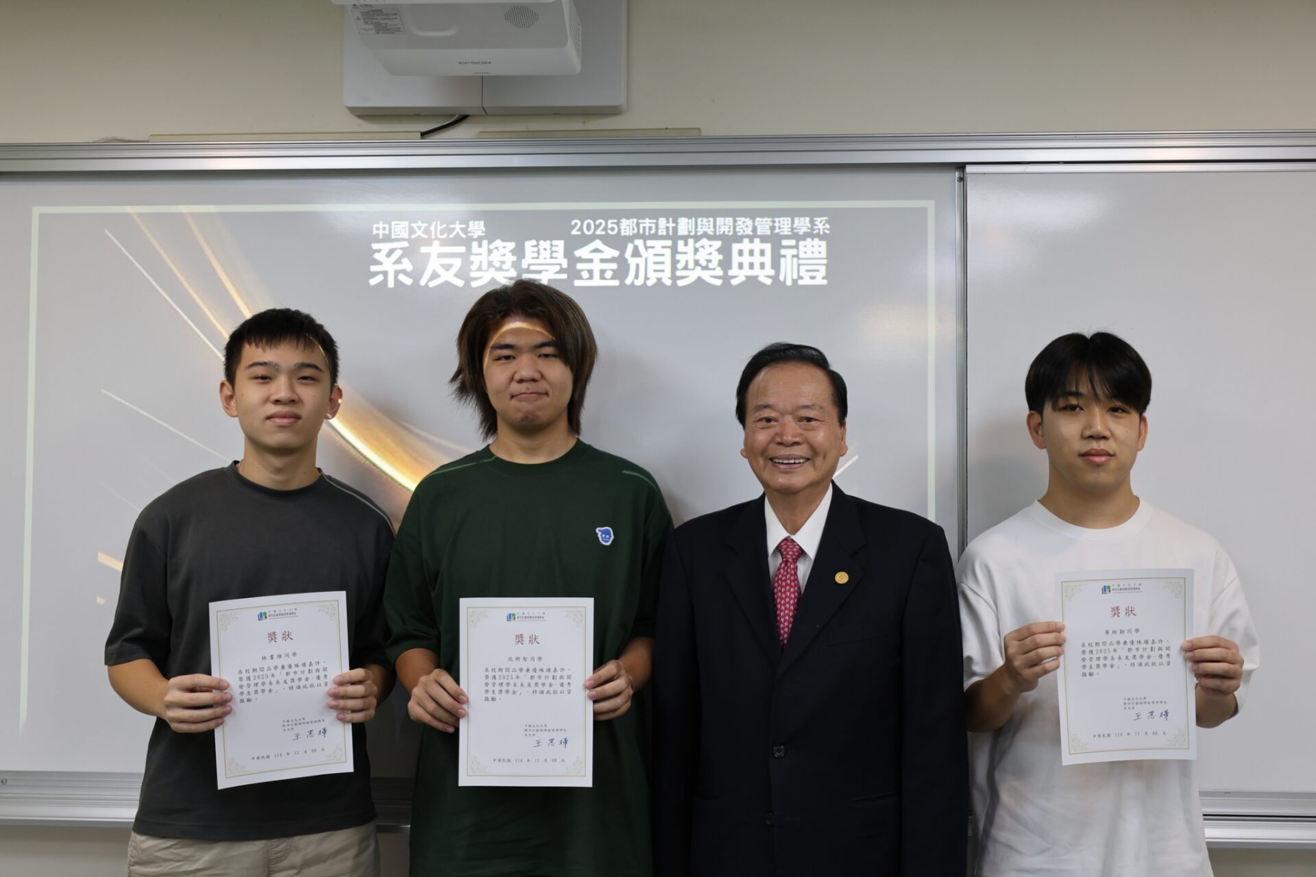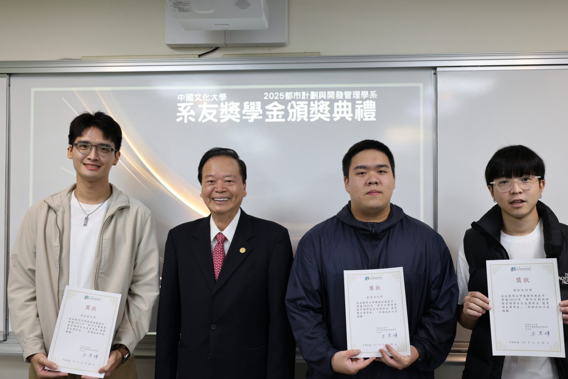 文化大學都市計劃與開發管理學系於 11 月 8 日 舉行系友獎學金頒發典禮,由本系傑出系友 黃良華學長 捐資設立多項獎學金,包含: