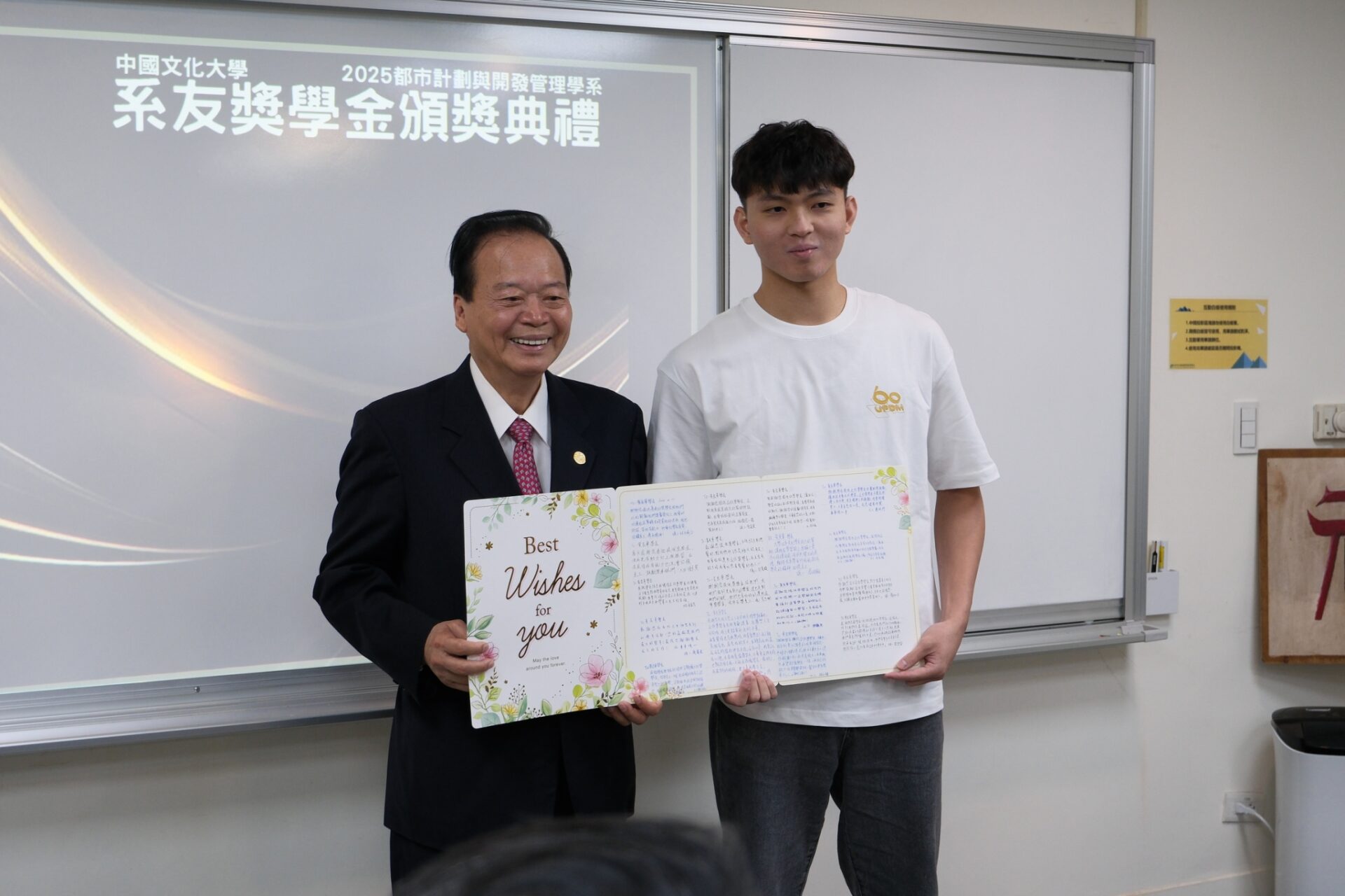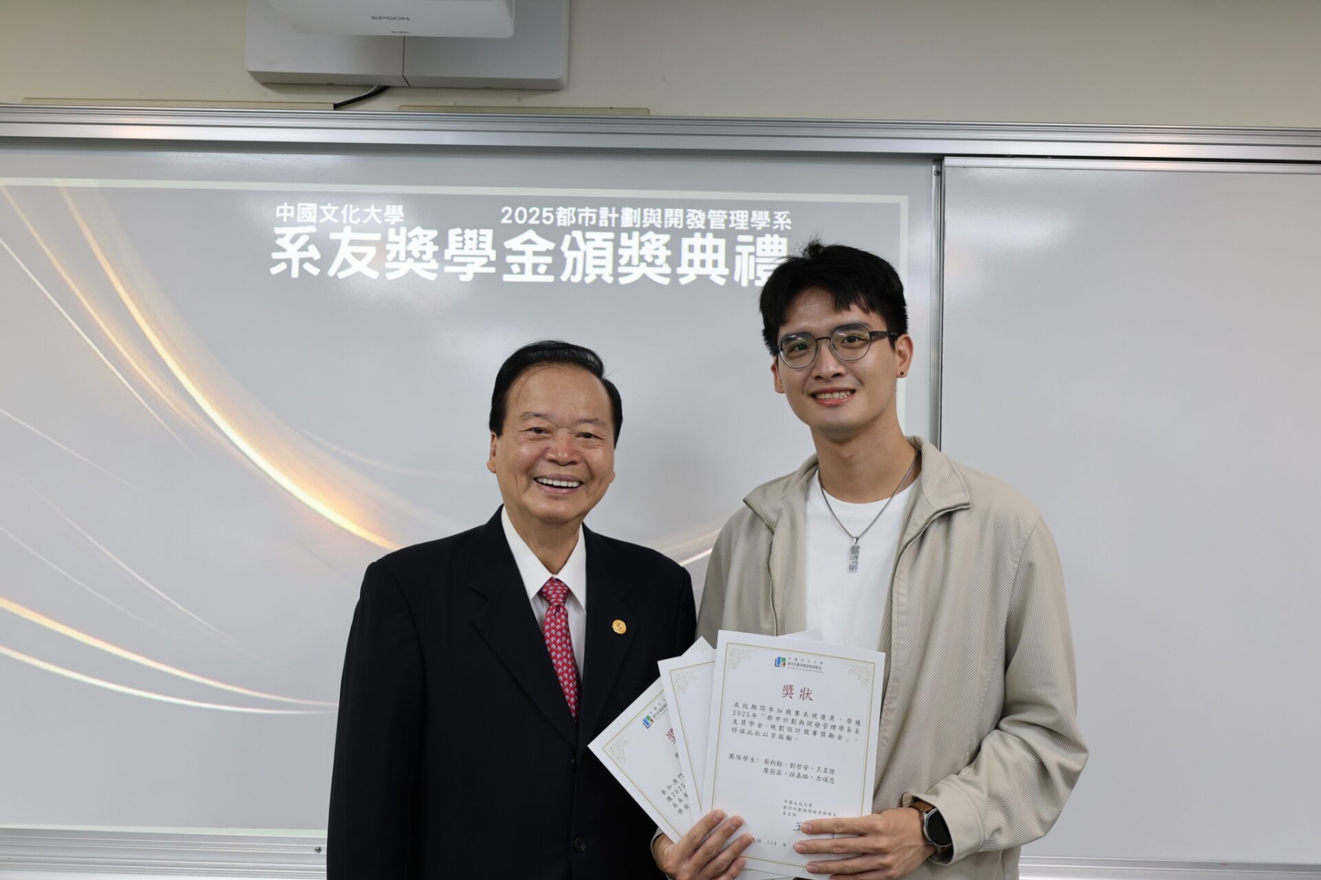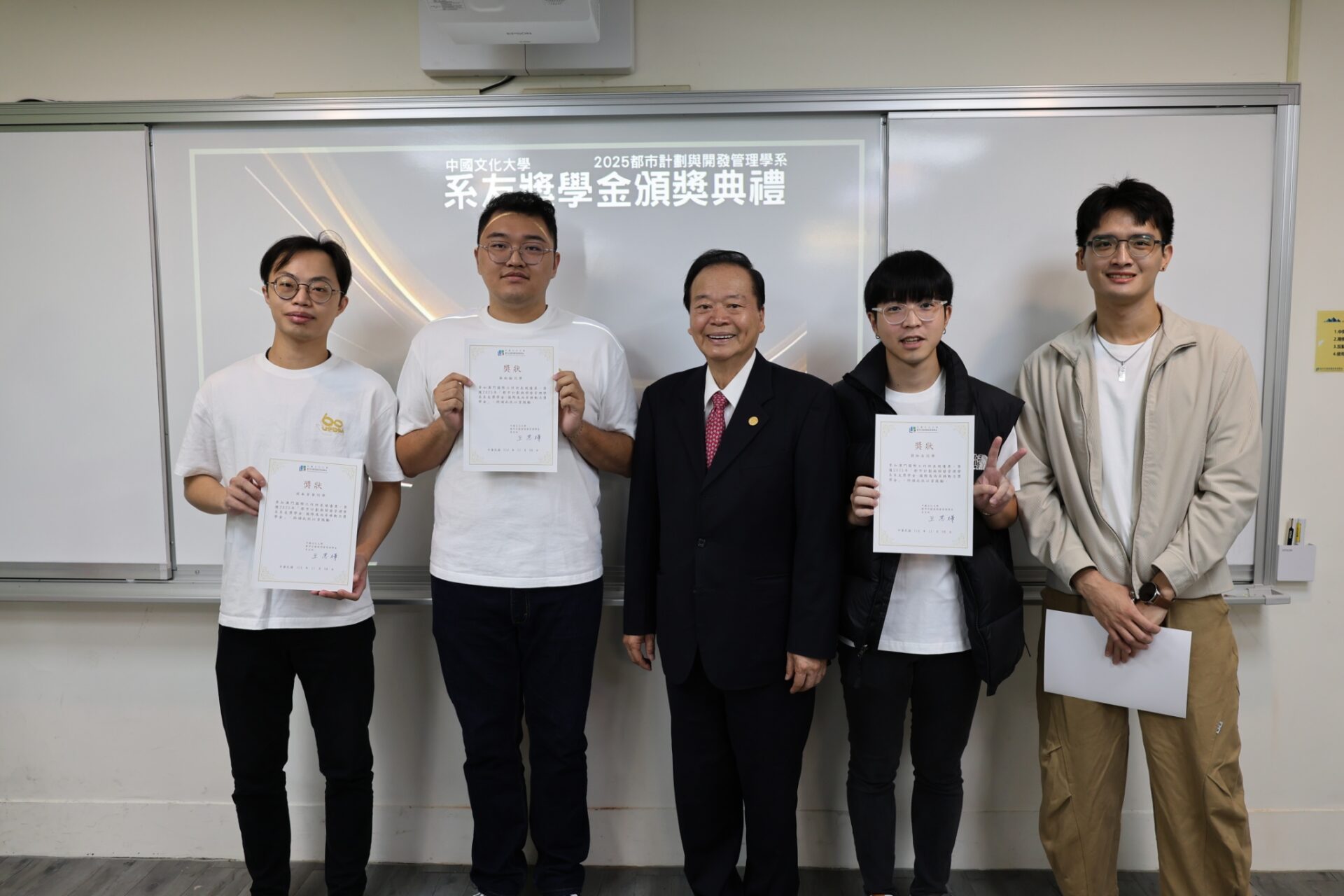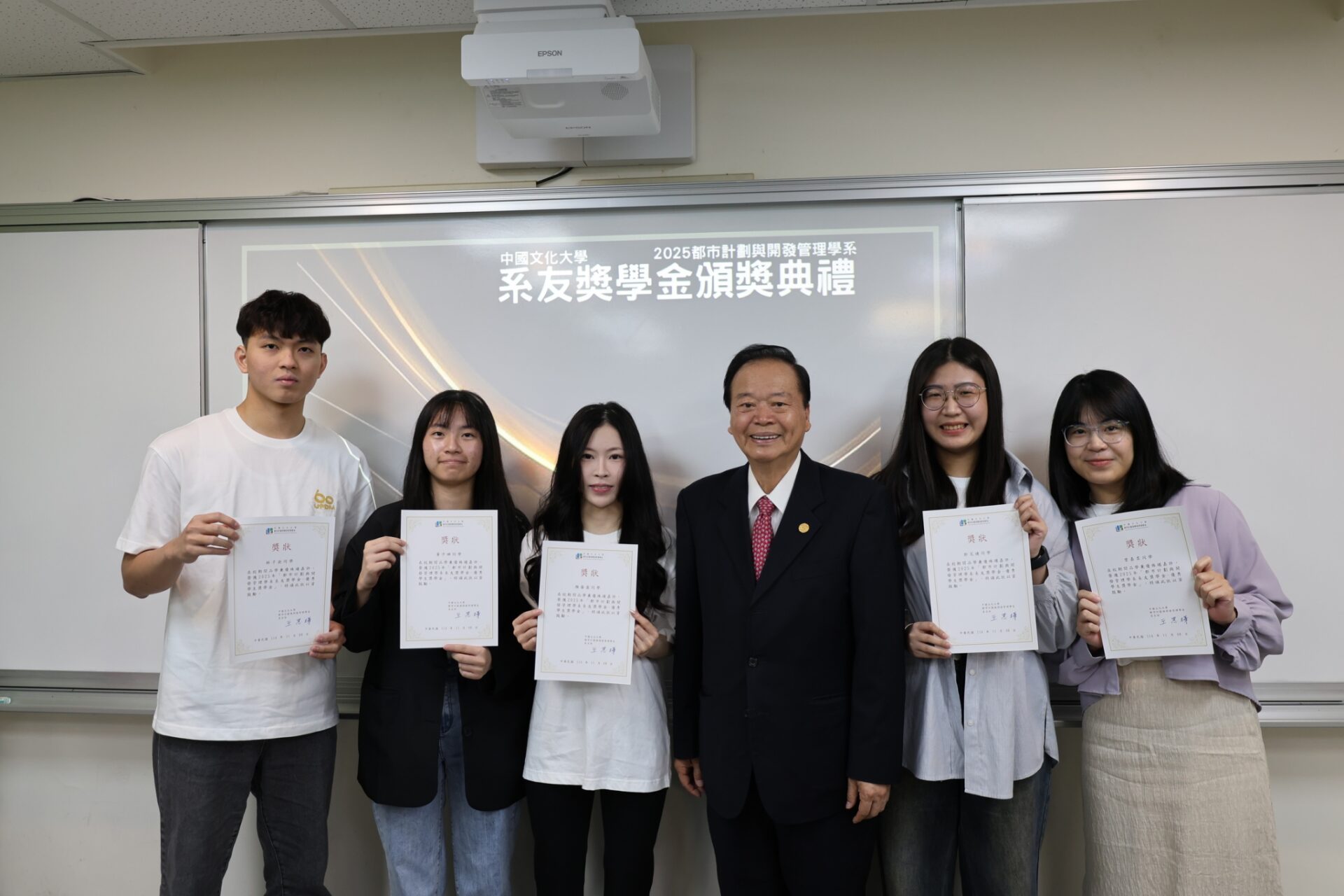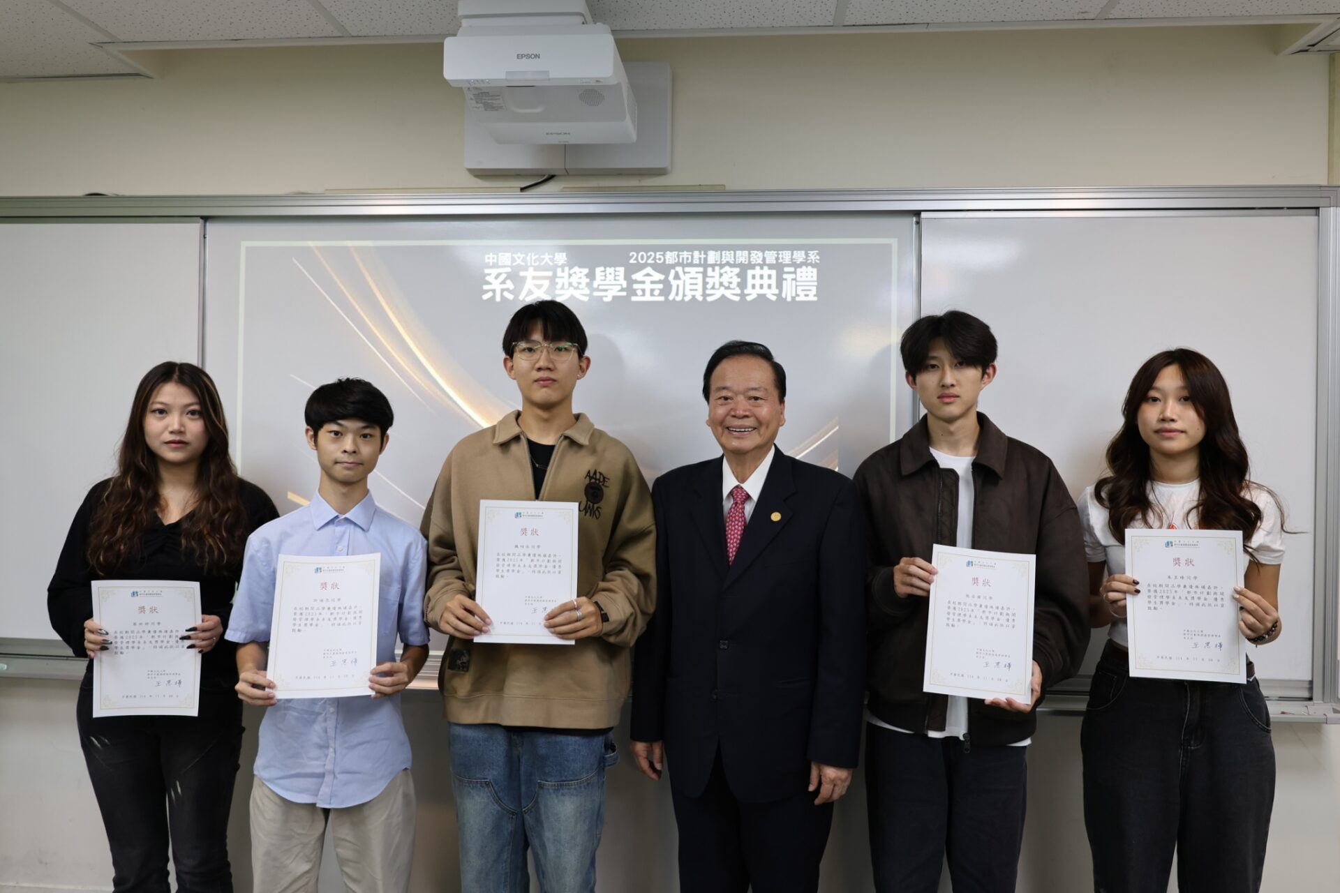 文化大學都市計劃與開發管理學系於 11 月 8 日 舉行系友獎學金頒發典禮,由本系傑出系友 黃良華學長 捐資設立多項獎學金,包含: